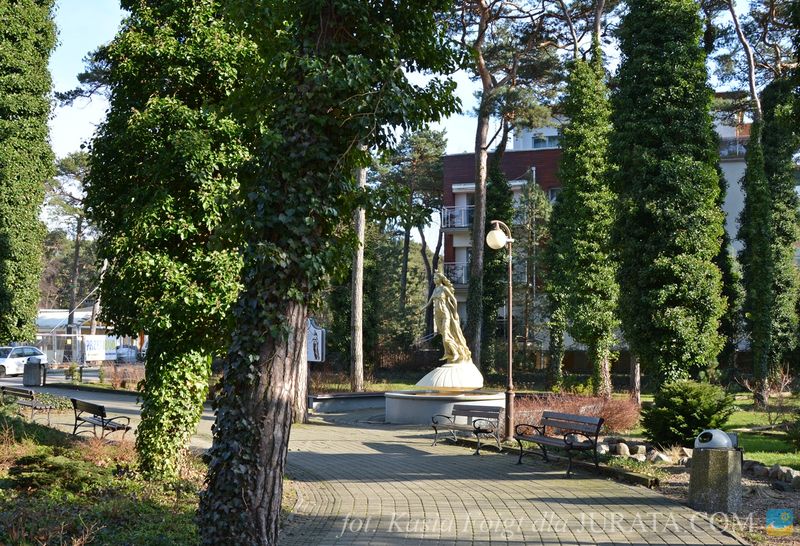 Rzeźba przedstawiająca boginię Juratę z legendy o pięknej władczyni bursztynowego pałacu. To jeden z najbardziej rozpoznawalnych punktów w miejscowości i popularne miejsce na pamiątkowe zdjęcie.